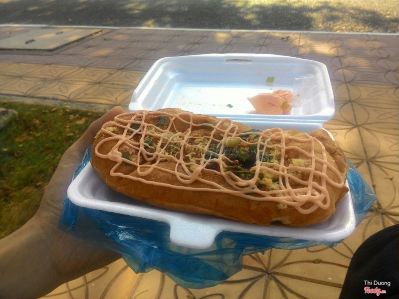 7.2Bánh Mì Nướng CayChỗ này đc pr khá nhìu trên face nên quyết định đến, đi đến sau trường Mạc Đỉnh Chi thấy bu đông là nó đó. Bánh mì nướng làm bán tại chỗ, nướng cho mềm, thơm rùi cho gia vị, có ớt , có mỡ hành quết lên, chà bôbg và sốt mayone...khá hấp dẫn nhìn là mún ăn liền. Ăn thì khá ngon, giòn mềm hok khô, vị mặn mặn, hơi tiếc là hok cay theo đô của mình, nhưng z khá dễ ăn. Mua về còn cho thêm sốt để chấm. Có cắt rời theo yêu cầu. Vì đônhg nên f chờ. Giá 6k/ổ ...Xem thêm