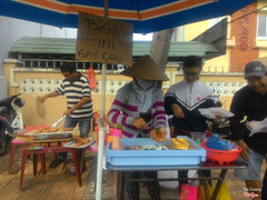 7.2Bánh Mì Nướng CayPhía sau lưng trường Mạc Đỉnh Chi rất dể tìm. Bánh mì cay thật ra là những thành phần quen thuộc nhưng lần đầu kết hợp nên thành ra lạ miệng: - bánh mì nướng giòn, tiêu chí này quan trọng. - bơ. - một lớp sate cay, có thể yêu cầu gia giảm nếu bạn ít ăn cay. - mở hành. - chà bông. - mayonaise. Nói chung khá vừa miệng nhưng vì đắc khách quá nên đôi khi làm sơ sài, chất lượng bánh không đồng đều. Giá 6 nghìn với món ăn vặt này là chấp nhận được. ...Xem thêm