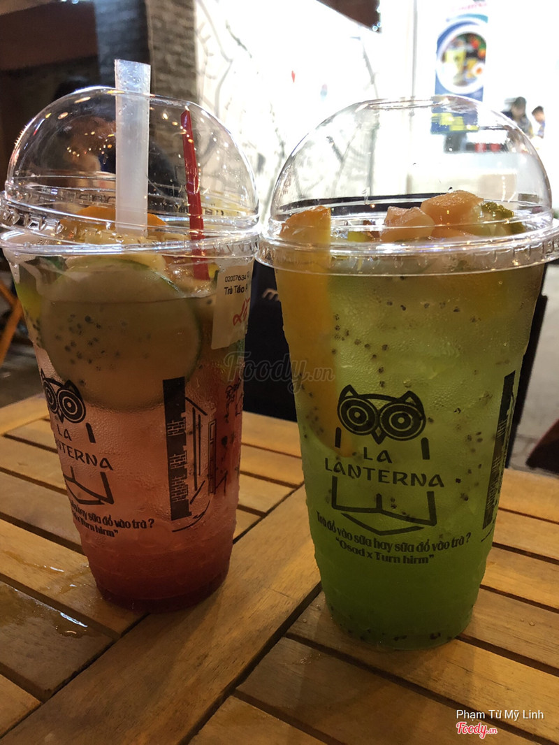 7.4La Lanterna - Tea ShopTên quán nghe lạ lạ, bán chủ yếu take away, buổi tối thì mới có bàn ngồi lại, ngay mặt tiền Trần Hưng Đạo từ ngã tư Lý Tự Trọng quẹo qua 1 xíu là tới. Logo hình con cú, in hình trên ly cũng khá ấn tượng. Ly màu xanh là Trà kiwi dưa lưới khá vừa phải ngọt vừa, có kiwi tươi, ly còn lại là món quốc dân sữa tươi trân châu đường đen, trân châu dai mềm vừa phải. Nên thử và cảm nhận! ...Xem thêm