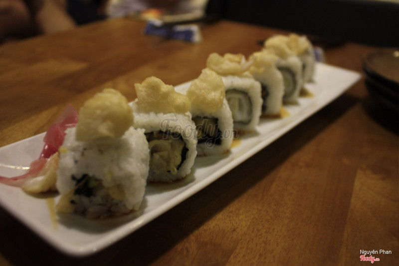 8.4Chắc chắn sẽ đến ăn dài dài <3 <3 <3Quán nằm hơi khuất nên hơi khó tìm, mình vs đám bạn phải vòng 2, 3 lần mới đến nơi. Không gian quán nhỏ nhỏ xinh xinh, có hồ cá Koi vs mấy dãy sake trưng bày rất độc đáo. Bọn mình mới chỉ thử đc mấy món nhưng nói chung rất hài lòng. Beach roll ngon, mình sợ k ăn đc cá sống mà ăn vào k có cảm giác tanh mùi cá, ngược lại tươi và béo béo ngậy ngậy. Sashimi rất tươi, tiếc quá có 3 miếng mà 4 đứa lận. Chicken teriyaki bento thì to oạch, ăn no căng rún (bất ngờ quá luôn, tại lâu nay toàn ăn gói bento mực 10k/gói :))) Đặc biệt trà đá vs phồng tôm free,( thấy mấy bạn phục vụ hay gọi là otoshi), mấy bạn phục vụ cũng dễ thương nữa. À tại vì khu Tây nên vô ăn toàn gặp mấy anh chị Tây cool ngầu, đẹp dễ xợ >.< Lo ăn quên chụp hình :(((( ...Xem thêm