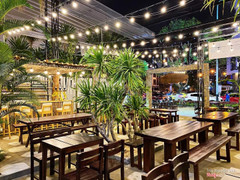 8.6Tropical GardenNhà hàng hay ho nằm ở khu Euro Villa, vừa NH vừa Pub mở cửa tới sáng ngồi thoải mái không e ngại. Khu này vắng nên nhạc mở tưng bừng, không gian thoáng, nhiều cây xanh. Nhân viên quán rất thú vị, vừa phục vụ vừa nhảy theo nhạc nên không khí trong quán rất vui :)) Hỏi nhân viên các món đặc biệt của quán thì được tư vấn bạch tuộc sốt Thái, trứng non cháy tỏi, cá mú sashimi, tôm Thái v.v... Món ăn trang trí bắt mắt sạch sẽ, đặc biệt các món sốt Thái ngon, chua cay mặn ngọt thấm vị. Lúc đầu chỉ định ngồi tới 12h về, mà vui quá ngồi luôn tới gần 4h sáng mà quán vẫn phục vụ hết mình. Lưu lại đây hôm nào có dịp lại ghé quẩy banh nóc tiếp :)) ...Xem thêm