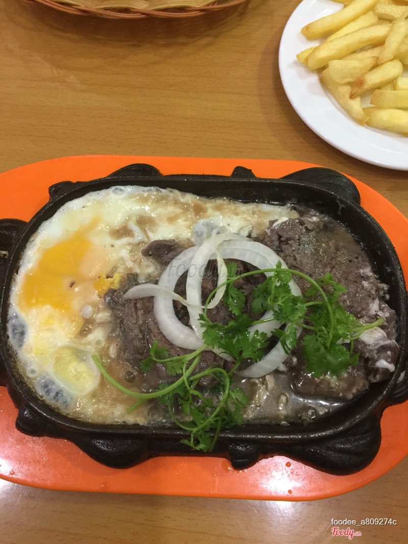 Mình gọi phần beafteak trứng khoai tây salad bánh mì, ăn no. Bò thì mềm, vị ok, salad trộn giấm ok, khoai tây ok, bánh mì mềm èo nên k ngon. ...View more