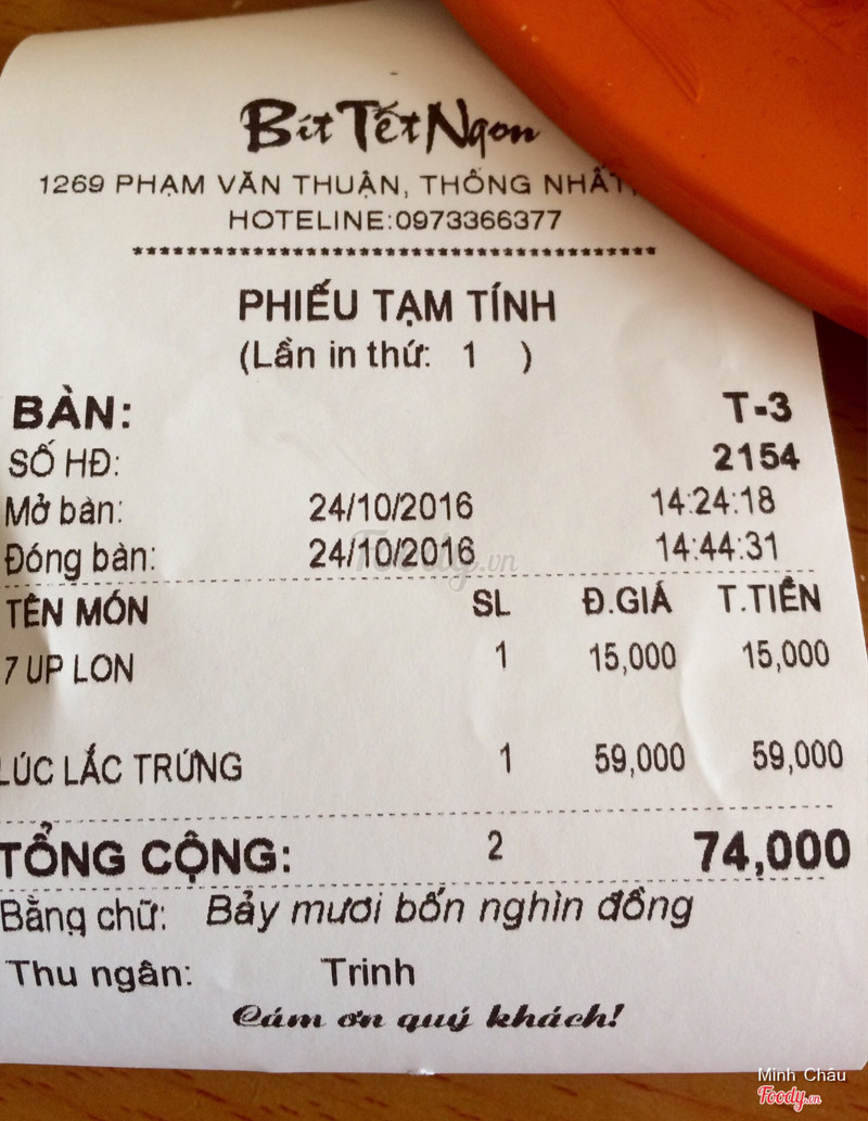 Quán Bít Tết Ngon trên đường Phạm Văn Thuận, khu đối diện trung tâm thương mại Vincom. Mở cửa bán cả ngày. Hiện quán đang có chạy chương trình khuyến mãi, ăn mỳ ý tặng 50% giá trị món đồ uống kèm theo. Quán không có chi nhánh nhé các bạn, không gian rộng và mới, khu trệt không gian mở, không có máy lạnh, món ăn lên nhanh, ở đây khi gọi món không thấy có dĩa rau salad mà phải gọi riêng, ahihi kèm phí nữa. Mình gọi phần Bò lúc lắc & trứng có giá 59k, 1 lon seven up 15k, bánh mì ăn thêm giá 4k. Vị nêm ổn. ăn vừa miệng. ...View more