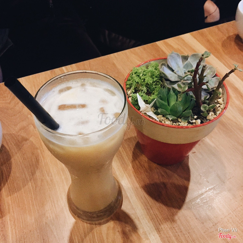 Vị trí: cũng gần nhà mình, ở gần đoạn đê la thành. Tuy nhiên biển hiệu và lối vào quán hơi nhỏ nên ko chú ý dễ đi qua lắm ( bên cạnh là hiệu thuốc có biển rõ to nên e nó bị lu mờ). Decor: quán nằm trên tầng 2 và chỉ có 1 tầng vậy thôi. Dù lối vào và biển hiệu bé nhưng không gian cũng rộng ra phết. Chia ra làm 3 gian phòng, có 1 phòng là ngồi bệt. Quán hơi tối 1 chút, ngoài trời thì bàn cao quá và mình chẳng nhìn thấy gì dưới đường cả. Điểm đặc biệt ở quán này là tường đc vẽ và trang trí hình Ai Cập. Nhà vệ sinh mình thấy hơi mùi. Food & drink: đồ uống ice blended của mình trông khá đẹp. Uống thì cũng ko đặc sắc lắm, đc cái lớp kem tươi ở trên khá ngon. Mà mình có thắc mắc là sao đồ uống đá xay mà mình uống vẫn nhai đc đá cồm cộp là tn??? Bánh ở đây ko ngon tí nào. Cốt bánh hơi bị cứng quá. Nhân viên: lịch sự, phục vụ cũng nhiệt tình. Giá cả: giống với mặt bằng chung các quán khác. Dao động từ 25-50k gì đấy. ...Xem thêm