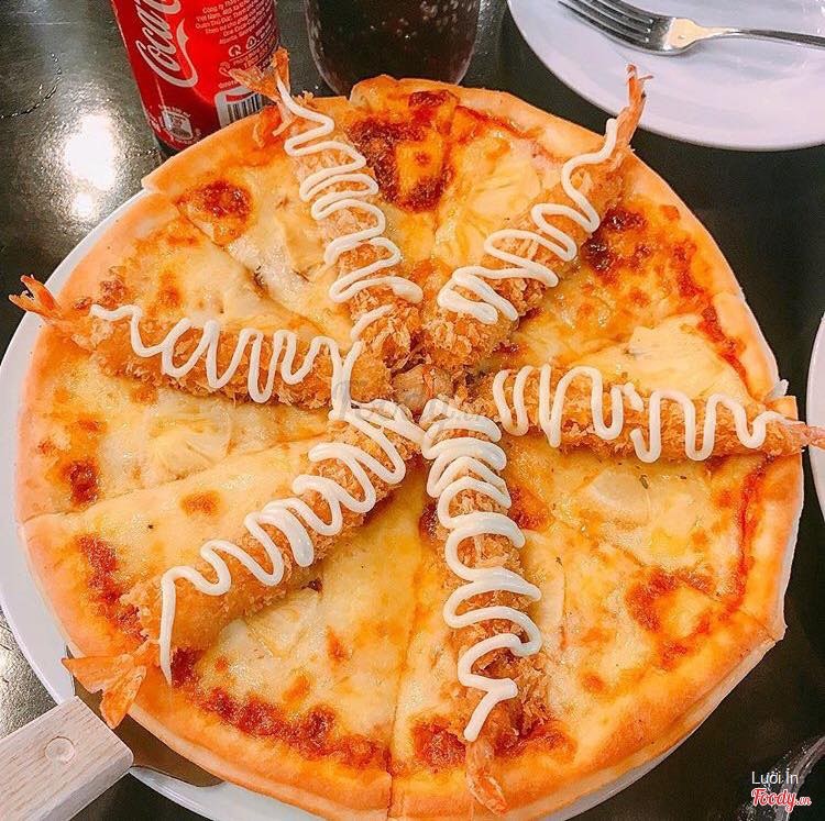 8.0Bầu Pizza - Thái HàĐây là những lần mình ăn pizza Tôm sú, cả mua mang về và ăn tại quán. Từ ngày ăn loại pizza này mình rất nghiện luôn, bỏ qua hết tất cả Pizza hut hay The Company luôn… Pizza bên trên có 5 con tôm sú to được tẩm bột chiên giòn và dứa + phô mai. Tôm sú được chiên giòn, kết hợp với pizza đẫm phô mai bên dưới thật rất độc đáo. Bạn nào thích phô mai cũng không nên bỏ quá Pizza Chicago nhé, nhân bên trong và được gấp đôi phô mai nữa đó. Ăn pizza ngon mà giá rẻ thì mình nghĩ nên chọn pizza Bầu. ...Xem thêm