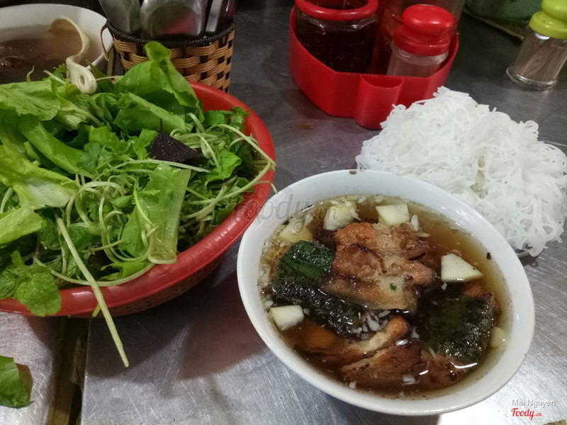 - Nằm trong con ngõ bé tí tẹo chợ Đồng Xuân, gần bên ngay đoạn Hàng Chiếu rẽ vào 1 chút. Con ngõ này bé mà người đến ăn tấp nập, chỗ ngồi không quá nổi 10 người ngồi, chật chội, eo hẹp, trời mưa ở đây còn khổ nữa, bẩn, trơn, dột; - Phục vụ nhanh chóng; - Bún chả ở đây lạ hơn các nơi khác là được quấn bằng lá lốt rồi kẹp vào que nướng trên than hồng. Do vậy mà thịt khá thơm, ăn kèm lá lốt khá lạ miệng, ngon lành. Nước chấm được pha vừa đủ, thơm. ...Xem thêm