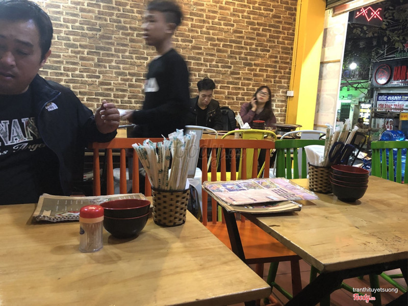 7.6Khá ổn :3Mình đến ăn buổi trưa nên quán khá vắng Order đồ lên cũng không hẳn là nhanh dù quán chỉ có 4-5 bàn có khách thôi (quán toàn khách ngồi 2ng 1 bàn nhé) Đồ ăn khá ngon, mình thấy cũng hợp khẩu vị Mình gọi set nướng bò gà, bò ướp khá ngon, thịt nhiều sốt nên cũng mềm, gà hơi cay hơn một chút nhưng cũng rất ngon vì đỡ ngấy Rau củ ăn kèm thì hình như nhân viên mang thiếu cho mình rổ xà lách thì phải ))))) Nhân viên hơi lơ đãng 1 tẹo vs cả đến lúc chảo nướng cháy đen thui mới thay cho mình, lúc đó m Uh nha cũng sắp đứng dậy luôn rồi ))) Trà đá uống hơi nhạt 1 chút nhưng thích điểm không quá nhiều đá nên không bị lạnh buốt, chứ đang ăn nóng mà uống lạnh quá cũng thấy hơi sốc nhiệt )) ...Xem thêm