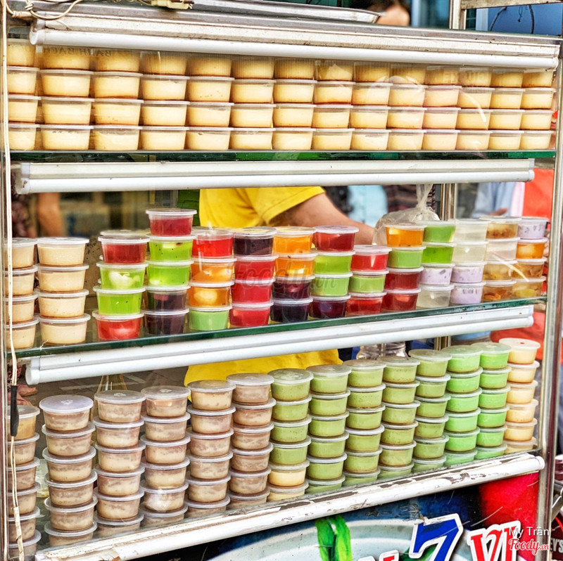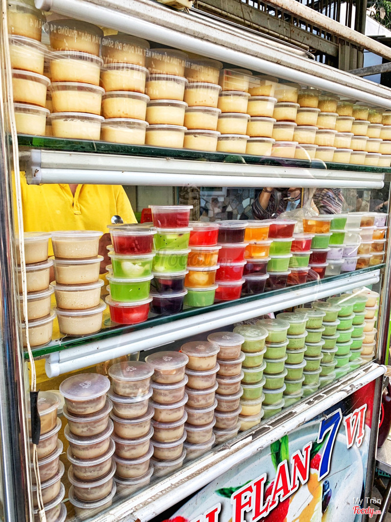 7.8Bánh Flan 7 Vị - Chợ Xóm ChiếuĐi ăn nui xào đùi gà thì thấy ngay xe bánh flan này sát bên tấp zô ăn thử liền. Flan đồng giá 7k/cái có 7 vị. Gọi sầu riêng ăn liền tay luôn. Lớp bánh flan khá ngon và béo, nhưng mùi sầu riêng không được đậm lắm. Tính ra thì thích ăn vị truyền thống hơn. Ngoài ra còn có rau cau phô mai đủ loại đủ thứ màu luôn. Nhìn chung ăn cũng ổn, có thêm thạch dứa nước dừa nhà làm khá ngon. Chỗ ngồi cũng khá ít và chỗ để xe ko có nên mua ăn về tiện lợi hơn nha. ...Xem thêm