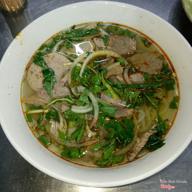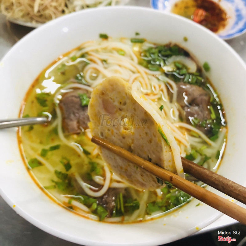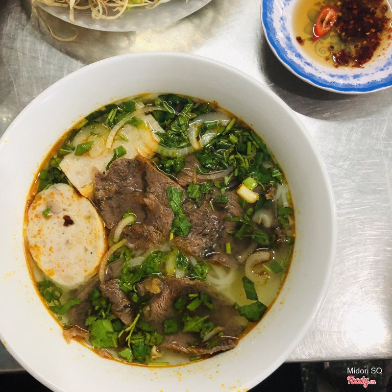 7.2Bún bò kiểu miền TrungBún bò này nước dùng không có có mắm ruốc huế, chỉ thơm mùi sả gừng, có thịt bò, giò heo, chả 2 loại. Sợi bún to vừa phải, không to như cọng bún bò Huế ở sài gòn mà lớn hơn cọng bún trong tô bún riêu. Sợi bún dai hơn bình thường một chút. 1 tô không giò 35k (giá 1/2019). Nước dùng không có vị ngọt, quán có bán kèm rau câu dừa 12k 1 ly, 25k 1 trái. Sa tế cay mà thơm lắm nha. Rau trụng hoặc rau sống. Giá khá ổn cho tô bún cũng khá lớn, nhiều thịt thà, chả. ...Xem thêm