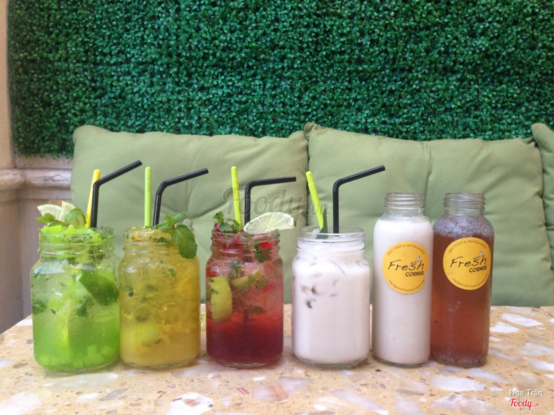8.2Ngon đềuMình đi từ Q1 qua đường Nguyễn Tất Thành gặp Tôn Đản quẹo phải là sẽ thấy ngay quán nổi bật với tông vàng và xanh lá. Để xe ở hẻm kế bên ko có thẻ xe. Quán cũng rộng rãi, kiểu gia đình, bạn bè đi được. Có khu ngồi ngoài trời nữa mà nếu là buổi trưa thì hơi nóng nhưng yên tâm là có mái che. Nghe tên Fresh Corner cứ tưởng là quán nước chuyên về đồ uống sinh tố healthy detox các loại ai ngờ quán bán quá trời đồ ăn đủ thể loại lun! Mà món nào cũng ngon thế mới thích chứ <3 Nhóm mình đi ăn buổi chiều thì có nhiều món hơn. _Lẩu 1 người có Lẩu thái hải sản - 75k, Lẩu cá bóp măng chua - 85k, Lẩu gà lá giang - 75k loại nào cũng ngon ơi là ngon lun. Nước lẩu chung 1 nước nhưng mà yên tâm là nước ở đây ngon nha. Chua, cay, mặn, ngọt kiểu lẩu Thái vậy đó. Nói chung là duyệt! _Bít tết áp chảo - 140k và Bò lúc lắc - 65k thì khá nhiều mình có thể share ra ăn chung. Mà mình ưng cái sốt trong 2 món này lắm, thiếu điều muốn bỏ hộp mang về lun :)) Sốt trong bít tết hơi mặn 1 chút so với món bò lúc lắc nha. Thịt bít tết to lắm mà hơi dai nên ăn lúc lắc thì dễ hơn. Ăn cùng khoai tây chiên giòn nữa. Lại duyệt tiếp! _Cháo ếch - 45k nóng hổi, thịt ếch ngon chắc thịt mà báo trước cho ai ko ăn cay được là món này cay lắm nha. Những ai khoái ăn cay như mình sẽ ghiền lắm. _Mì xào bò - 59k và Chả giò Fresh Corner - 59k cũng ok. _Nước cũng nhiều loại ngon lắm mà mình thích nhất Mojito chanh (ko nhớ tên) ngon nhất, đã khát, lại có cả thạch. Mai mốt sẽ ghé lại đây để thử các món ăn sáng! ...Xem thêm