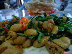 Quán này ngon thì ngon nhưng lâu lâu đi ngang quá mới ghé thui chứu xa quá, tút tận dưới Thủ Đức lựng, mỗi lần chạy đi ăn mà xa muốn chết luôn. Tuy xa nhưng bù lại được cái món ăn ở đây ngon lắm, và cái món yêu thích của mình lòng xào nghệ... chẹp chẹp, hương vị thơm ngon ướp đậm đà, món này ngon hết xảy nhá. Hnay mình còn được măm măm món gân bò xào sate, món này cay quá trời cay, chỉ thấy mấy ông nhậu thi nhau gắp, ăn thấy dai dai, giòn giòn và cái bị cay lại mất sạch mùi vị rùi chả bít ngon dở ra sao nữa. Và kết thúc bằng món lẩu bò, ở đây lẩu được đặt bằng nồi đất xịn nhá, rất giản dị và thơm ngon. Nghe nói nhiều lúc triều cười lên thì cái đường ở đây nó gần giống cái sông, mình cũng chưa được thử lần nào nên cũng rất háo hức xem sao. Do quán này ở xa quá nên lâu lâu thèm quá cung ráng mà bò chứu nếu mà ở gần gần trong tp chắc mình thành khách quen mất ...Xem thêm