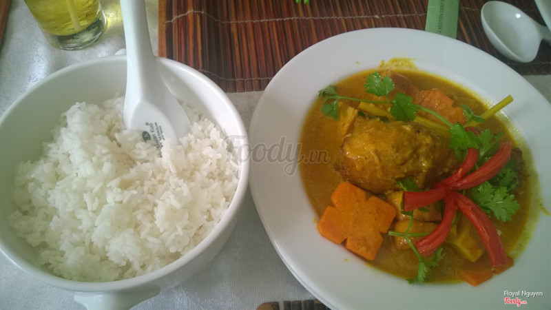 Quán nằm vị trí đắc địa Q.1 nhưng hơi khó thấy xíu, đường Nguyễn Thiệp là đoạn ngắn giao với Đồng Khởi, đa số khách nước ngoài đi bộ ghé. Mình đi xe máy, tới thì nhân viên mới chỉ sang phía Đông Du gửi. - KHÔNG GIAN: Quán thiết kế đơn giản, hơi hướng Pháp một tí, tường treo tranh làng quê VN cũng khá đẹp, ngồi trên lầu hơi nóng vì phía dưới full bàn rồi. Mình đi trưa nhưng cũng rất đông khách - THỨC ĂN: nêm nếm theo khẩu vị miền Nam, hơi ngọt một tí, đánh giá chung là 7.5đ.     + Gỏi xoài thịt bò nướng 139k++: món này là món mình thích nhất trong số các món ăn, chắc vì thích ăn bò cộng thêm nước mắm trộn gỏi ngọt ngọt như ở nhà Má làm, bò mềm, xoài ko quá chua, nêm gia vị rất ngon.    + Cá chẻm nướng sả 179k++: phần này hơi ít, cá hơi bị khô, nước mắm chấm cũng bình thường, sả nướng ngon    + Cà ri gà 119k++: cà ri rất béo, thơm, ngon nữa, hơi ngọt so với một số người ăn ko quen, nguyên cái dđùi gà to.    + Cơm chiên Lemongrass 139k++: cơm chiên hơi lạc, gạo chưa dẻo lắm. nội dung không có gì nhiều, thấy toàn cơm à :(    + Chạo bò 159k++: chưa được ngon lắm, nướng hơi khô. - PHỤC VỤ: tính 10% VAT + 5% phí phục vụ nha, mà thấy phục vụ chưa nhiệt tình lắm, hơi lơ là không biết do mình ngồi trên lầu hay do là người VN :) ...Xem thêm