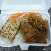 8.4Heo quay chay ngon số dzáchĐang thèm cơm tấm đi ngang thấy quán cơm tấm chay lạ quá vô thử luôn. Ở đây có khá nhìu món ăn nha. Đồng giá 20k/hộp, mún gọi thập cẩm cũng đc. Mình kiu hộp cơm tấm sườn bì chả trứng, thêm 100gr heo quay kho là 20k nữa. Cơm tấm ngon, ko bị quá khô hay nhão. Chả nướng rất ngon, mềm, béo và thơm lắm, bì ăn cũng ok, có miếng sườn thì hơi dai. Ăn cơm tấm có mỡ hành nước mắm đầy đủ nha. Thấy heo quay lạ nên mua ăn thử, trời ơi ngon thần sầu, mặn mặn ngọt ngọt vừa miệng, nhai giòn rôm rôm thích lắm. Ngoài ra còn nhìu món kho ăn cơm như chả cá kho gừng, thịt kho tiêu. Menu mấy món nước như phở, bún, cari bán theo ngày. ...Xem thêm