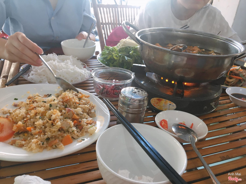 9.4Món ăn không quá xuất sắc nhưng phục vụ và không gian điểm 10Đi đường Nguyễn Thị Thập Quận 7 quẹo vào đường số 38, chạy thẳng tới ngã tư thứ 2 là thấy quán nằm phía tay phải nha mn. Mình ăn ở đây 2 lần rồi. Chắc sau này sẽ lựa chọn làm điểm dừng chân quen thuộc cho cả nhóm đi ăn trưa vào những ngày 1, 15 hàng tháng. Món ăn cũng không quá cầu kỳ hay đặc sắc lắm đâu nhưng nói chung là ổn. Gía cả hợp lý, 4 đứa ăn 3 món: 1 lẩu chua cay, 1 cơm chiên dương châu, gỏi gì đấy quên rồi với 4 ly trà đá tổng cộng hết có 205k à. Ăn no lắm. Sư cô chủ quán dễ thương làm tụi mình ai cũng mến, cô niềm nở và vui tính lắm. Bạn mình xin cái thun buộc tóc cô bảo cô k có tóc nên lấy đâu thun :))) Có bạn nam phục vụ cũng nhiệt tình không kém. Không gian như mình nói là điểm 10 vì bàn ghế tre như này rất mát, thoáng đãng mà quán không phải ở chỗ quá đông xe cộ nên sạch sẽ, yên tĩnh. Có dịp muốn ăn chay rủ bạn bè, anh chị em qua đây nhiều món ngon mà rẻ nè mọi người :)) #quanchayngonquan7 #quanchayngonre #phucvunhiettinh ...Xem thêm