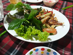 8.6Sông Quê - Bình ChánhQuán khá to, mình đi buổi tối chủ nhật nhưng quán không đông lắm và trống khá nhiều bàn. Bàn trong nhà hơi nóng nên mình ra ngồi dãy bàn kê sát mé sông, khá là mát mẻ. Mình đi 4 người, gọi 1 cơm chiên, 1 gỏi ngó sen tôm mực, 1 mực chiên giòn, 1 bò cuộn phô mai, 1 bao tử xào chua ngọt, 1 dê hấp tía tô. Giá cả tổng cộng là hơn 600k. Quán nấu ăn khá ngon, nhưng nhân viên phục vụ hơi lộng cộng và còn bưng nhầm đĩa. Được cái không gian mát mẻ và đồ ăn ngon nên sẽ ghé lại. ...Xem thêm