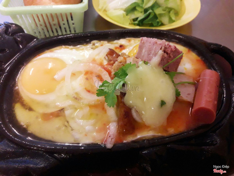 7.0Bò Né 3 Ngon - Bò Quanh Lửa Hồng - Đường 2 Tháng 4Quán bò né 3 ngon này lâu rồi mình mới ghé ăn lại, bảng giá vẫn không thay đổi về các phần bò né. Mình chọn ốp la 20k 1 phần với 2 trứng ốp la kèm với pa tê, chả, xúc xích, sốt béo, .... nêm thêm tí hành tây bào mỏng và ngò rí. Ăn cùng 1 ổ bánh mì được nướng trong lò nướng nên luôn nóng giòn. Không thấy quán miễn phí nước ngọt, hoặc 1 số quán khác có thì cũng rất ít nước ngọt nên thường phải gọi thêm nước uống. Quán có bán thêm các loại nước ngọt có ga . ...Xem thêm