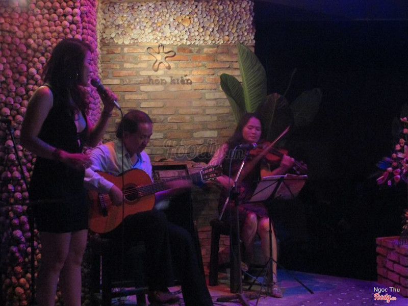 9.2Không gian làm nên hương vịNhạc hay, guitarnists gảy đàn thật sự khiến ngta ngưỡng mộ và mê đắm, cô Ngọc Tú giọng cổ điển như nghe trên radio, cô Thái Hòa giọng thật trong và cao. Phụ thu 45k/ người, giá nước trung bình, chất lượng khá. ...View more