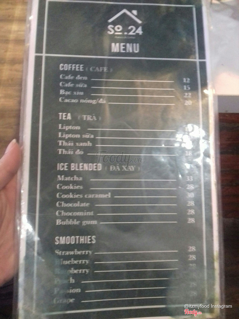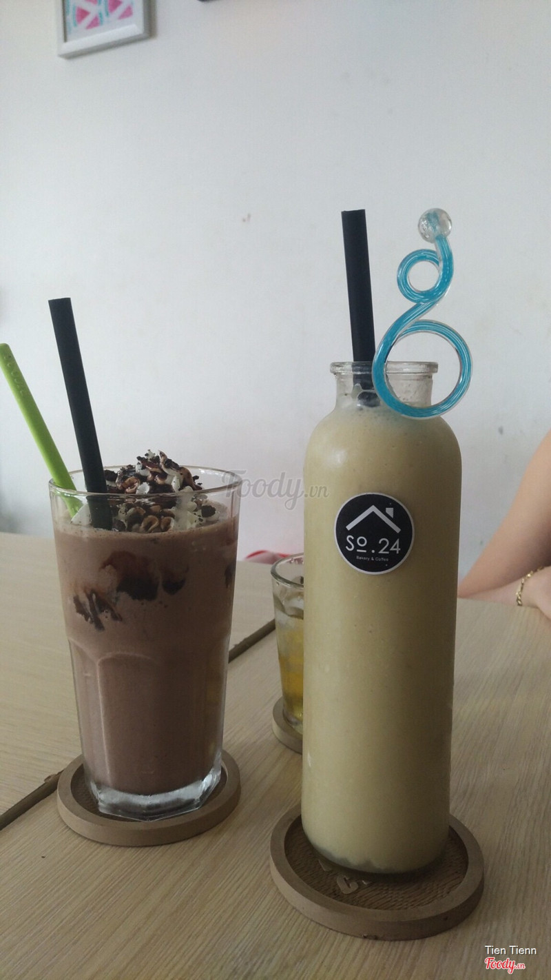 6.8Nhà Số 24 - Bakery & CoffeeĐây là lần đầu tiên mình đến quán này. Vì quán có vị trí khá xa trung tâm và xa nhà mình nên mình ít biết đến. Mình đi qua đây uống cafe với hội bạn 4 người tầm 9h sáng thấy quán khá vắng khách. Mình kêu 2 ly cookie chocolate, 1 ly matcha trà xanh và 1 chuối xay sữa chua. Cookie chocolate mình thấy uống cũng tạm được, hơi ngọt nhưng không béo. Matcha trà xanh ở đây uống ok hơn tí, có thơm mùi trà nhưng lớp kem ít béo. Chuối xay sữa chua uống ok nhất. Sinh tố với sữa chua giúp da đẹp nên rất chất lượng. Không gian rộng. Thoáng mát. ...Xem thêm