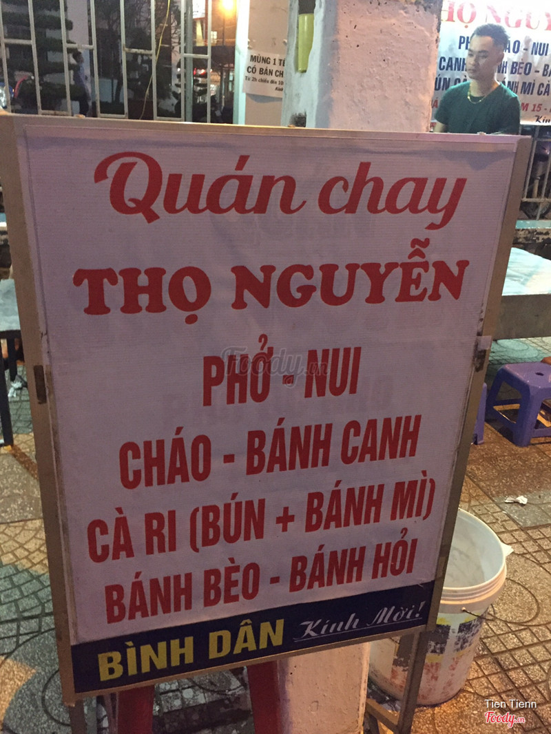 7.0Quán Chay Thọ Nguyễn☘️Quán bán vỉa hè, bán cả ngày và chỉ bán 2 ngày trong một tháng là mùng 1 và 15. ☘️ Quán bán nhiều món lắm: nui, bánh canh, bún, phở, cháo, cari, bánh bèo, bánh hỏi... mình có mua về 1 tô nui và 1 tô bánh canh, hết 40k, có lẽ 20k/1 tô. Nui mình ăn buổi sáng rất đậm đà, chay mà nêm nếm đậm vị dã man, nước ngon ngọt. Có rau củ quả như: củ cải trắng, cà rốt, hành baro, đậu hũ trắng, đậu hũ chiên... ☘️ Quán bán cả ngày nên rất đông khách. Chỗ ngồi và để xe đều để trên lề đường nhé. ...View more