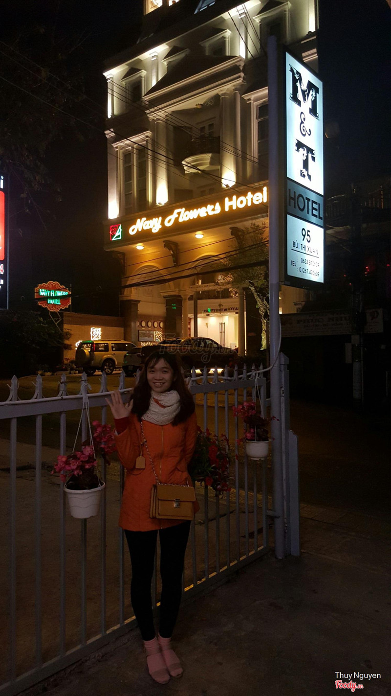 9.2M&T HotelKhách sạn toạ lạc trên đường bùi thị xuân, gần trung tâm thành phố, chỉ mất 5' để đi bộ ra chợ, khu phố nhộn nhịp vs nhiều hàng quán tiện lợi, phòng ốc sạch sẽ, wifi khá mạnh, giá 300k/phòng đôi, xe máy thuê 80k/ngày, phục vụ thân thiện, nhiệt tình, cô chủ quán vui vẻ, dễ gần! Sẽ quay lại khi đến đà lạt ...Xem thêm