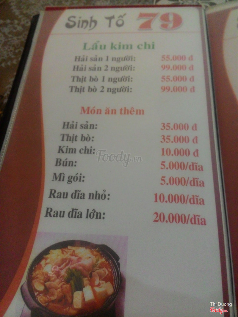 Quán này là quán sinh tố nhưng mình lại thích vào đây ăn lẩu. Lẩu kim chi của quán rất ngon, các bạn nên thử nha. Menu sinh tố của quán nhiều món lắm, còn đồ ăn thì tiêu biểu là lẩu kim chi thôi, có lẩu 1 người, lẩu 2 người. Mình có nhận xét là giá lẩu khá cao. Lâu lâu đi ăn đổi gió thì được. Lẩu mình chỉ gọi lẩu 1 người mà cho 2 người ăn nên gọi mì thêm. Lẩu có hải sản, rau nhưng lúc bưng ra thì tất cả đã nằm trong nồi rồi . Mình thấy điểm này không hay. Phải mà chủ quán để đồ ăn ra dĩa riêng cho khách tự để vào theo ý mình thì tốt hơn. Chứ để một hơi đồ ăn vào đầy lẩu rồi bưng ra vậy nhìn nó lộn xộn lắm. Nước lẩu kim chi nêm khá ngon nha, chua cay vừa ăn,hợp khẩu vị của mình. Đồ ăn thì tạm được. Dù sao cũng hài lòng vì nước lẩu ngon. Phục vụ ổn, anh chị chủ nhiệt tình. Không gian quán thì dễ thương quá. Quán nằm ở bờ kè đối diện cổng B nên dễ tìm, dễ ghé. ...Xem thêm