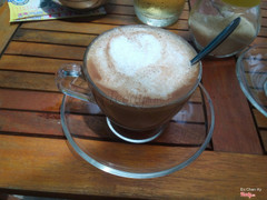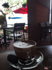 Quán dễ thương nè, cũng khá rộng rãi nữa, thích nhất hồ cá. Trời mát thì có thể ngồi ngoài trời ngắm mấy con cá được, có dù che nên không sợ nắng nha. Lâu lâu lại thấy có phun hơi nước nhìn lãng mạn ghê ^^ Menu của quán cũng khá đa dạng, tuy nhiên cách trang trí không được đẹp cho lắm. Mình gọi 1 ly latte, thường thì phần kem phía trên có thể vẽ trang trí hình gì đấy nhưng mà cái này chắc đổ lên vậy thôi, không có hình thù chi hết, hương vị cũng bình thường. Được cái bạn nhân viên phục vụ nhanh. ...Xem thêm