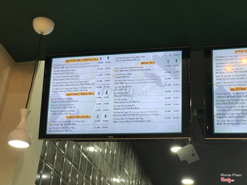 5.0Trải nghiệm không gian mớiQuán nằm ở vị trí Q1, không gian xanh lá tạo cảm giác mát, tươi mới, bức tường được thiết kế có hình lá trà. Menu phong phú, đa dạng đặc biệt là nhiều loại topping thạch trái cây, trân châu hơi bở và mềm. Vị trà không thơm lắm, vị béo nhiều. Giá không quá mắc so với mặt bằng Q1. Nhân viên thân thiện, nhưng nhiều khi cười giỡn lớn tiếng, la mắng nhau, mình ngồi trên lầu còn nghe, nên thấy hơi chói tai một chút. Không gian trên lầu (chỗ chính) thì khách uống xong nhân viên không dọn dẹp, khá nóng và chật chội Uống thử cho biết chứ thật sự ở đây chưa đủ ấn tượng để thuyết phục mình quay lại lần 2 ...View more