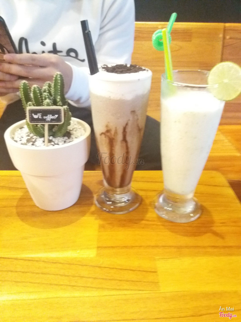 7.0We CoffeeLần đầu đến We Coffee, quán cũng mới khai trương gần đây thôi. Không gian quán tuy nhỏ và không có gì đặc biệt nhưng có cảm giác ấm cúng. Nhân viên thân thiện, còn nhanh nhẹn nữa. Chúng mình gọi 3 món là chanh tuyết, Cappuccino và cookie ice blend. Đứa nào cũng khen ngon. Cực thích món chanh tuyết ở đây, vừa thơm mùi chanh, đậm vị, ngọt chua vừa phải. Cappuccino cũng đẹp nữa. Cookie ice blend tuyệt vời, lớp kem béo vừa phải, ko bị ngấy. Kết We coffee từ đây. Lần sau sẽ rủ bạn bè tới nữa. ...View more