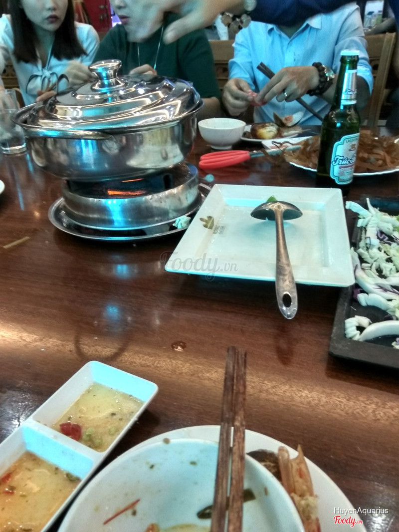Nhân dịp 20/10 sếp bao nên chúng mình được dẫn đi ăn ở đây. Vị trí: Trong ngõ nhưng khá dễ tìm, ngay ngã tư Trần Thái Tông chỗ hiệu sách ADC Không gian: Tầng 1 là nơi đặt các bể đựng hải sản tươi sống. Đủ các loại tươi rói bơi bơi trong bể thích mắt lắm. Có cả giá niêm yết rõ ràng cho khách hàng đến mua mang về. Tầng 2 trở lên là nơi phục vụ khách đến ăn. Chúng mình ngồi tầng 2 không gian ấm cúng và trang trí hình cá treo trên trần khá bắt mắt. Đồ ăn: chúng mình gọi 2 set lẩu hải sản, mỗi set gồm 1 khay hải sản thập cẩm các loại như mực, cá, tôm, sò hến gì đó. Một đĩa rau các loại. Một đĩa bún khô nữa. Khay hải sản cũng vừa vừa, mình thấy hơi ít. Gọi thêm hai đĩa rau củ luộc. Hai đĩa mực hấp. Hai đĩa ốc hương hấp. Hai đĩa tôm rang muối thì phải. Món ăn tươi, ăn ngon ngọt. Thích nhất mực nháy, thơm ngon dễ ăn lắm. Mình ưng vì không thấy bị tanh hay bở. Chất lượng thì thế rất OK rồi. Chỉ có điều lẩu set hơi ít đồ. Chúng mình ăn cầm chừng và không no. Chắc phải gọi gấp đôi mới no ấy😊😊 Nhà hàng có cả nướng nữa nhưng chưa có dịp thử. Phục vụ: Ngày lễ nên hầu như full bàn. Nhân viên vì thế hơi luống cuống. Thấy các bạn gọi nhau hơi ồn. Nhưng phục vụ nhiệt tình, quán sát bàn tốt. Khách cần gọi thêm đồ hay dọn bàn đều khá nhanh. Thái độ thân thiện . Giá cả: Ai muốn ăn hải sản chất lượng mà tươi sống thì đây là một địa chỉ hợp lý. Chúng mình đi 13 người hết tầm 4 triệu rưỡi. Nhà hàng đang có chương trình giảm 20% khi đặt trước. Vì sếp trả tiền nên thấy vui. Còn bình thường chắc khi nào lấy lương nhiều tiền mới đi ăn. ...Xem thêm