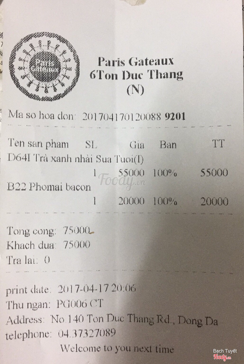 5.6😋😋PARIS gateaux điểm dừng chân!!!Thời tiết tháng 5 nắng nóng kinh khủng, tranh thủ nghỉ trưa ra paris gateaux tdt làm cốc trà giải nhiệt tuy bước chân vào thấy cửa hàng nóng khách thì đông có 1 nv làm bao h mới xong đc định về cho r. Nhưng thấy bạn nv vẫn nhiệt tình chào đón thui đợi chút v mất công r. Hihi cảm thấy đáng yêu ghê😊😊 ...Xem thêm