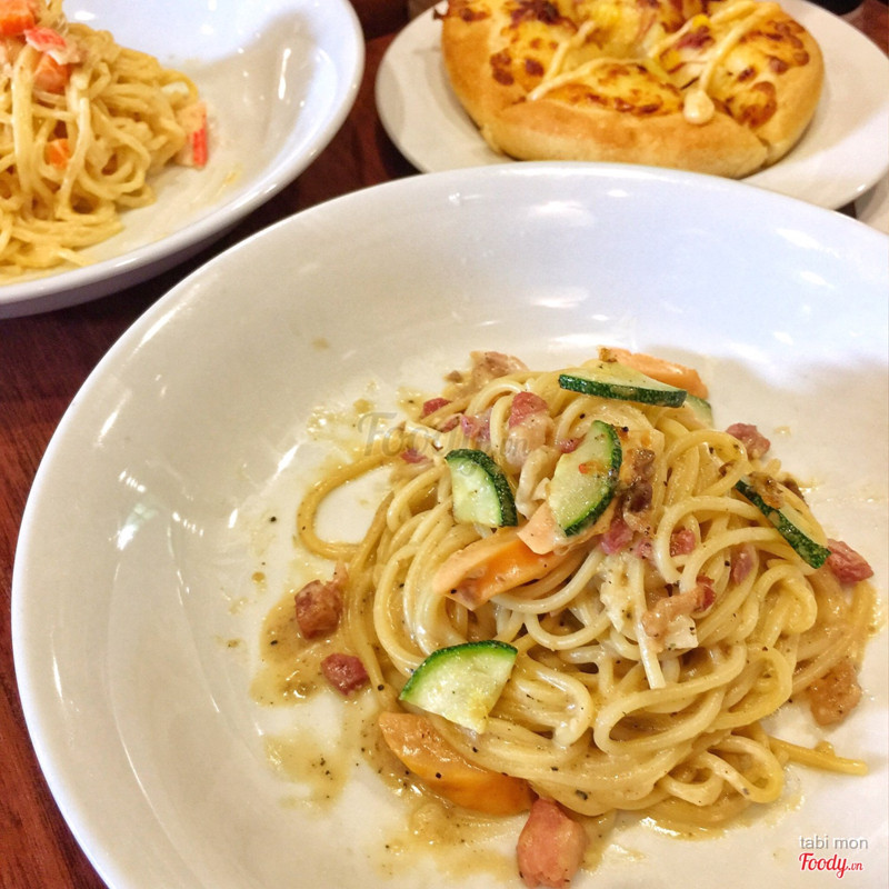 Quán theo hình thức delivery nên tối giản hóa trang trí nhà hàng ngày xưa thì tầng 1 là chỗ đỗ xe, tầng 2 mới ăn uống và order giờ quán mới sửa sang lại, nhìn giống rạp cgv, với ghế sắt đỏ đen, mình gọi 1 pizza seafood pesto và 1 salad tuna bacon salad tạm ổn, nguyên liệu có bacon, cá ngừ tuna, ngô, rau xà lách, do có sốt mayoniase và thịt ba chỉ nên ăn khá ngậy pizza seafood pesto, nguyên liệu có khá nhiều tôm loại nhỏ, mực, sốt pesto hơi béo bánh đế dày ăn đầy đặn, hơi có dầu chắc do nướng trên chảo gang ...Xem thêm