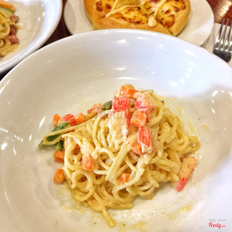 Combo pizza - mì Ý Pizza Hut giờ vàng giá rẻ (10-17h). Mình có gọi 1 combo 109k gồm 1 mì (chọn mì tiêu đen), 1 pizza bò phomai mini và 2 nước ; cùng 1 mì 49k gọi thêm (mì thanh cua) . • Nhận xét: pizza bò phomai, size mini gọi là chạy qua hàng thịt, nhưng được phần phomai thơm, sốt ngậy, vỏ bánh cũng được. Còn mì Ý nhìn chung sợi khá ngon, hương vị thì mì thịt nguội xúc xích sốt tiêu đen hơi nhạt mà nồng tiêu dã man, ít tiêu đi sẽ ổn hơn; mì thanh cua, sốt chua chua ngọt ngọt, mình thấy cũng khá hay hay, kiểu vị trẻ con mà nhanh ngấy. Đồ uống có trà sữa trà đen không có gì đặc sắc, nhạt nhạt mà béo ú 😂. Nếu chọn nước ngọt thì được refill thoả thích lun. . Follow insta @tabimon của mình để cùng chia sẻ các món ăn ngon nhé 😊 ...Xem thêm