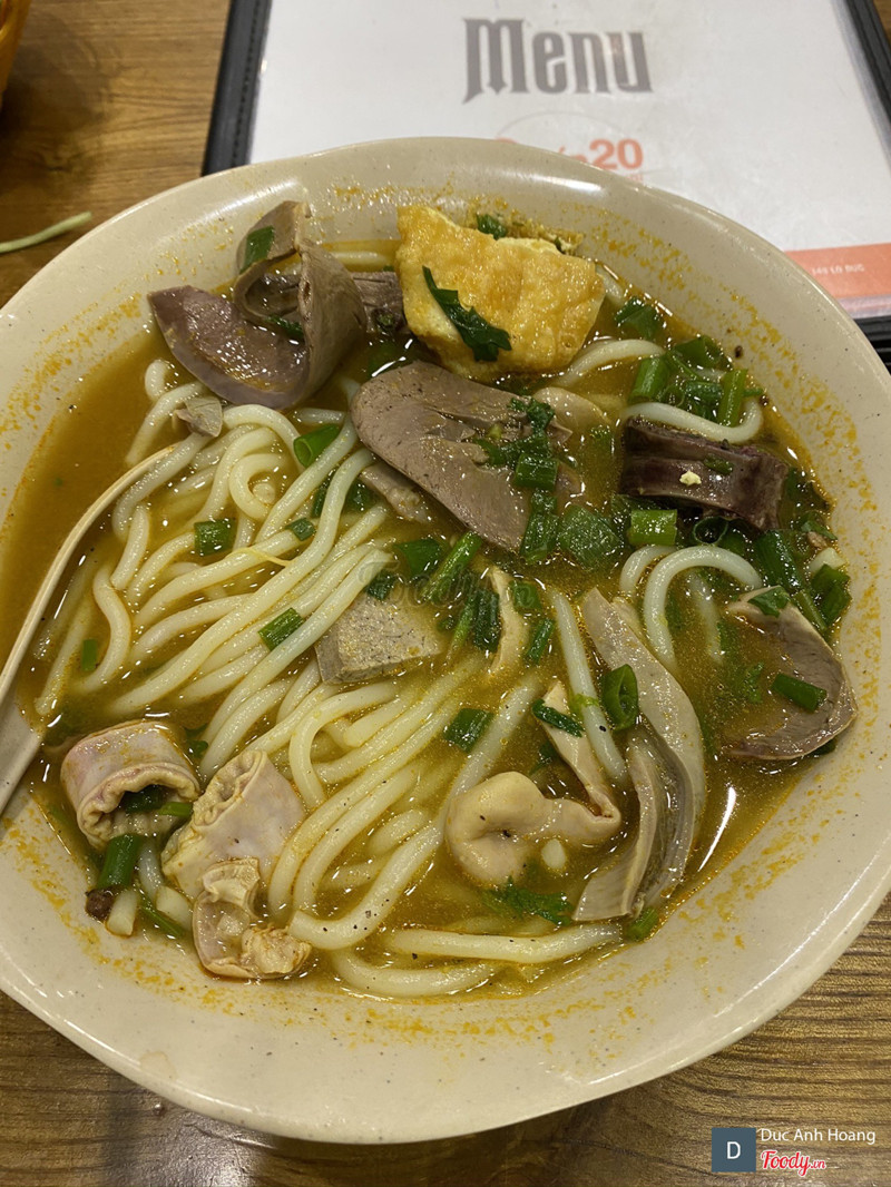 Quốc thực là đây. Một bán mỳ/bún đẫy đà lòng đầy đủ. Dồi ngon, lòng no , gan, thịt dải, cuống họng.... không ngấy, ăn hết mỳ mà cảm giác vẫn còn 1/3 lòng đang đợi. Quán ngồi trong ngõ sạch sẽ mát mẻ, tối có lẽ sẽ đông. Chỉ có là nước dùng vị kiểu Thái. Cá nhân mình thức nước vị original VN hơn. Giá cũng dạt dẻ 35k/bát.