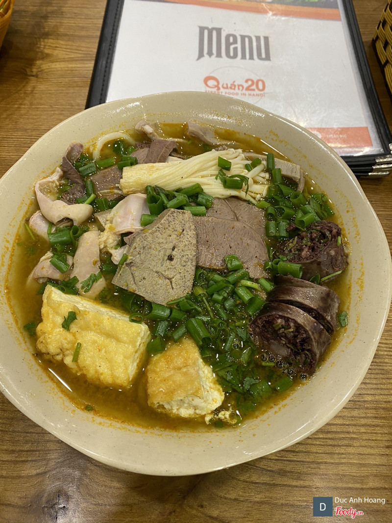 8.4Quán 20 - Bún Lòng & Chân Gà Rang Muối🎏BÚN LÒNG - SỐ 149 LÒ ĐÚC Bún lòng quán 20 chuyển sang Lò Đúc được 1 thời gian rồi. Quán bé có 2 tầng, được cái sang bên này sạch và thoáng đãng. Ở đây mê nhất ở món bún lòng là nước dùng kiểu Thái chua cay bùi bùi. Đồ ít hơn, lòng hay thịt cũng thái vụn đi.nước dùng vẫn ngon siêu thơm nhưng buồn là chỉ nóng ấm ấm, riêng ăn đồ bún miến là nước ko nóng hổi là mất điểm nhiều cực kì. Đi kèm là khay nước chấm 2 vị pha vừa miệng rất ngon.Bọn mình gọi thêm đậu rán nữa, may quá đậu chiên nóng giòn, bùi ngậy điểm 10 luôn. Ăn lúc trưa siêu đông chờ hơi lâu và bị bí 1 chút. Phục vụ ko nhiệt tình lắm, ở ngoài có mấy chú trông xe nhưng cũng ko giúp khách dỡ xe nữa. ...Xem thêm