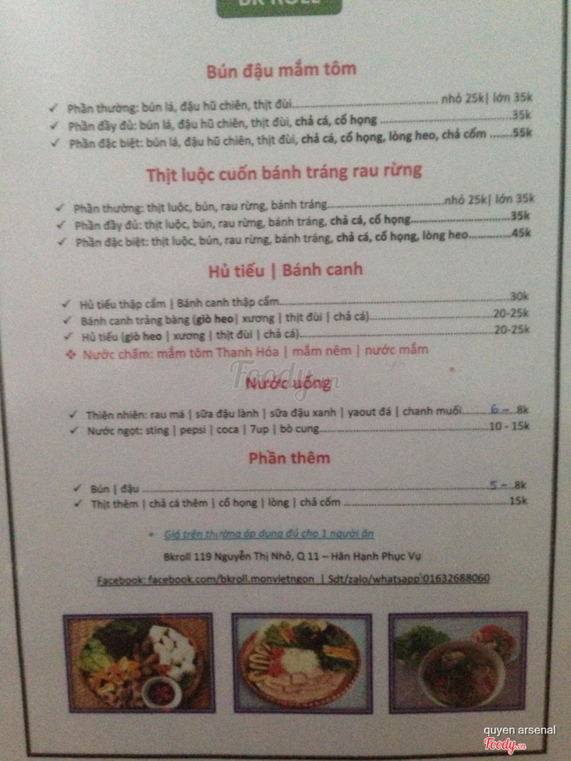 8.4Bkroll - Món Việt NgonKhông gian thoáng mát, rộng rãi, chủ quán vui vẻ nhiệt tình. Chấm cho món bún đầu mắm tôm phần đặc biệt rất chất lượng so với giá, tuy nhiên thực đơn còn hơi ít món. Quán nằm ngay góc ngã ba nhưng bị khuất do cột điện che nên đi từ hướng Lữ Gia nên mình góp ý làm bảng hiệu nổi bật gây sự chú ý hơn. Chúc quán ngày càng phát triển mà cập nhật thêm nhiều món mới. ...Xem thêm