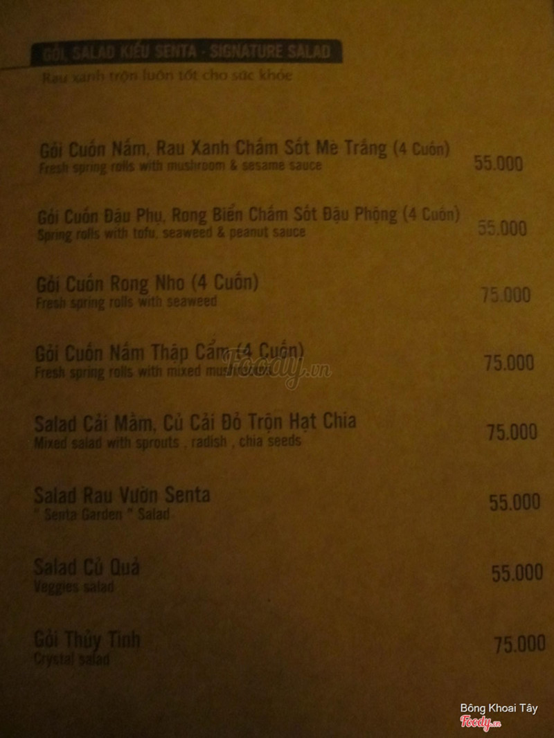 9.0Ăn chay ngon tại trung tâm thành phốĐây là lần thứ hai đến đây ăn, Lần trước là ăn lẩu nấm senta thấy ngon nên quay lại đây ăn. Lần này chúng tôi gọi salad Senta, miến áp chảo và món cà ri vàng. Tôi thấy món nào cũng ngon nhưng salad thì hơi bị nhiều giấm. Menu các món ăn ở đây khá là đa dạng, đặc biệt là có món gỏi hoa thiên lý và yaourt cơm rượu 😍 không gian bao gồm tầng trệt và tầng lầu, ngồi ở đâu cũng được. Địa điểm thì ngay trung tâm thành phố nên rất tiện và dễ tìm. Vì mặt bằng ngay trung tâm nên giá tất nhiên sẽ cao hơn những chỗ khác một tí 😋 phục vụ thì cũng bình thường, lâu lâu các chị lại châm trà uống. Nói chung là một địa điểm tốt để ăn chay tại trung tâm thành phố mà không phải đi xa ...Xem thêm