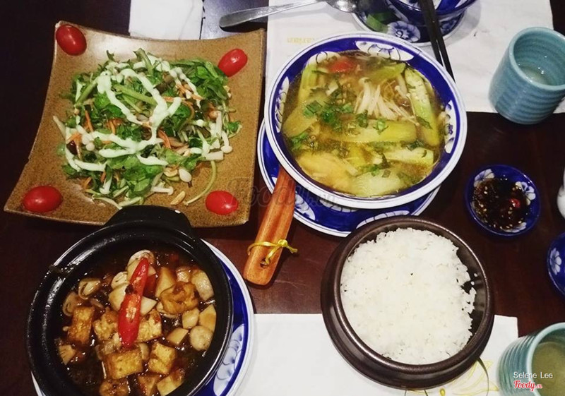 8.6Không gian đẹp - Món ăn ngon*Vị trí: dễ tìm, ngay mặt đường Tô Hiến Thành. *Không gian: Rộng rãi và thoáng mát, có cả khu vực ngoài trời và trong phòng máy lạnh. Ngoài ra mình cũng thích cách trang trí của quán nữa, vừa giản dị, gần gũi nhưng cũng rất chỉn chu, hiện đại; nói chung là đẹp! Vd như cái bàn mình nhà mình ngồi hôm đó có chân bàn là bàn đạp máy may, rất độc đáo (mn có thể xem hình). Điểm trừ ở phần không gian là hơi tối, bởi v hơi khó để chụp hình này nọ :')) *Phục vụ: vui vẻ, nhanh nhẹn và lịch sự. *Món ăn: Phải khen cách trình bày của quán. Đũa được quấn bằng lá dứa thơm lắm, chén đĩa muỗng đũa xinh kiểu mộc mạc cũng xếp ngay ngay ngắn nên tạo thiện cảm ngay khi ngồi vào bàn. Menu đa dạng. Hôm đó nhìn chung các món nhà mình gọi đều ngon miệng. Món gỏi cuốn có sốt đậu phộng rất oke, phần gỏi cũng tươi ngon. Cơm gạo lứt hạt sen nấu tơi nên dễ ăn, thích hợp cho cả những ai k quen ăn gạo lứt. Món rau củ kho ngoại trừ việc hơi bị mặn quá ra thì cũng rất ổn. Mình đặc biệt thích phần trình bày của món lẩu nấm, xinh cực nha. Nấm và rau được xếp trong một cái rổ bé xinh xinh, nồi lẩu cũng xinh xinh nốt. Nước lẩu đậm đà, kiểu ngọt thanh chứ k phải gia vị nhân tạo á. Nói chung ăn xong món lẩu cảm thấy kiểu rất nhẹ nhàng thanh đạm :)). *Giá cả: so với chất lượng như vầy thì giá cả hợp lý. ____________ Nhìn chung hài lòng về chất lượng của quán. Mong quán sẽ luôn chỉn chu như này và ngày càng phát triển hơn nữa nhieee! ...Xem thêm
