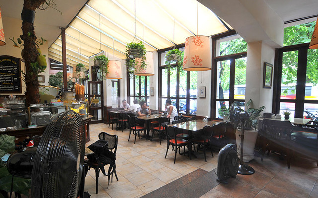 Hương NguyễnQuán nằm ngay đường Hai Bà Trưng gần với Nhà Hát Lớn. Mình tới quán vào một tối mưa nhẹ. Lối lên là một cầu thang gỗ nho nhỏ cũ kĩ khá hay. Quán có decor như quán ăn Thổ Nhĩ Kỳ, màu sắc xanh đỏ khá vui mắt. Mình chọn chỗ ngồi kế bên cửa sổ. Mình gọi súp bí đỏ, salad Nga, 2 suất bít tết, 1 ly nước hoa ...