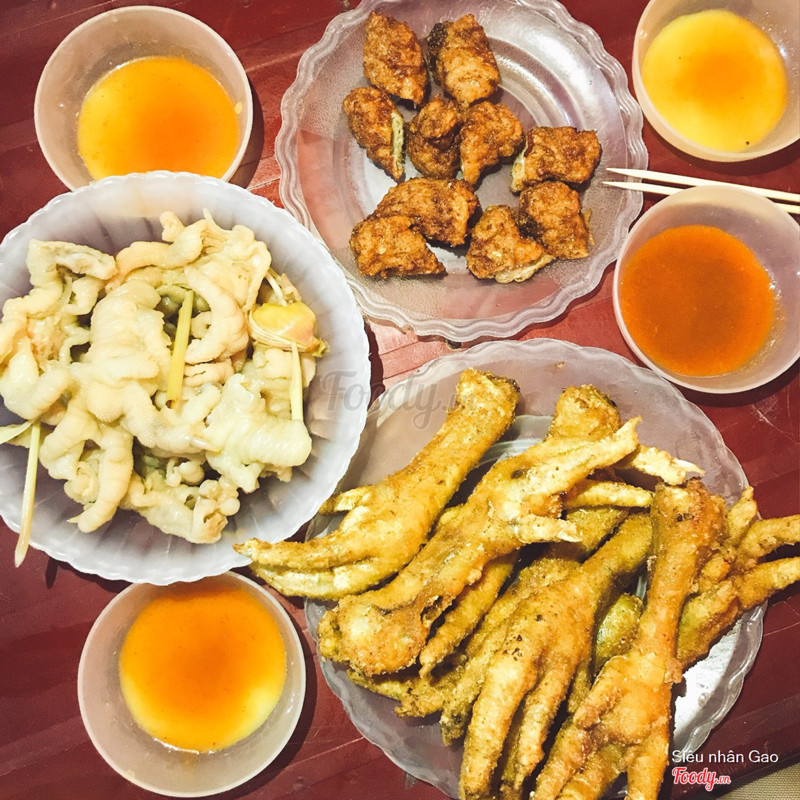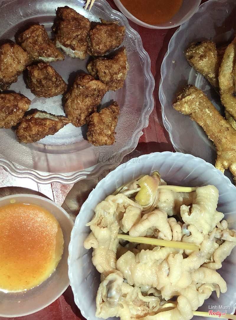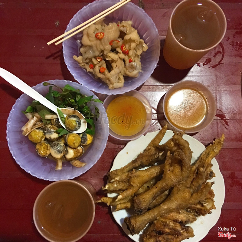 5.8Ăn Vặt Tôn Thất Thiệp - Ốc Luộc & Chân Gà Chiên GiònMón này bán vào chiều tối, ở con ngõ tương đối rộng rãi. Ngồi vỉa hè thôi, có cái quầy bếp dễ nhìn và bán tá lả đồ ăn vặt từ ốc, khoai, nem, trứng cút,... . Để mà hỏi vì sao đến đây chắc Mây sẽ chỉ ngay vào bát sốt chấm: chua chua ngọt ngọt ăn đồ rán cực ghiền. Chân/cánh được tẩm bột chiên giòn chứ ko phải nướng than hoa thường thấy đâu nhé, thế nên sẽ khá béo vì ngấm dầu, ăn ko mau còn nhanh bị nguội. Các món còn lại khá bình thường. . 🎈Giá: 12k/chân, 20k/cánh, 5 - 40k/món khác ...Xem thêm