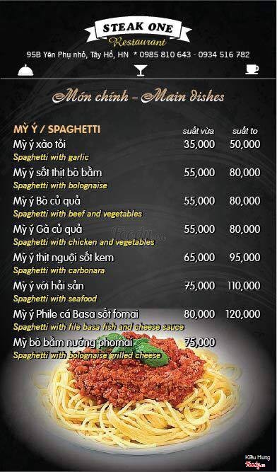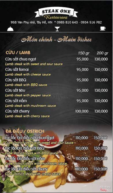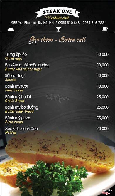 Menu mới của nhà hàng SteaK One - 95B Yên phụ nhỏ, Tây Hồ, Hà Nội ...View more