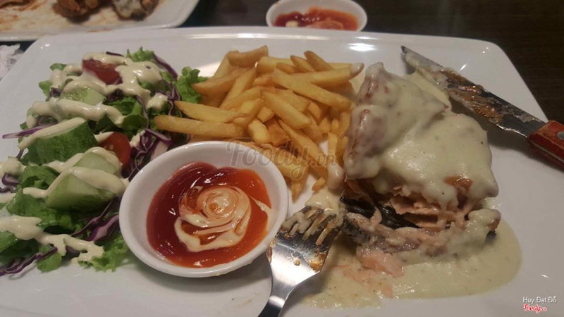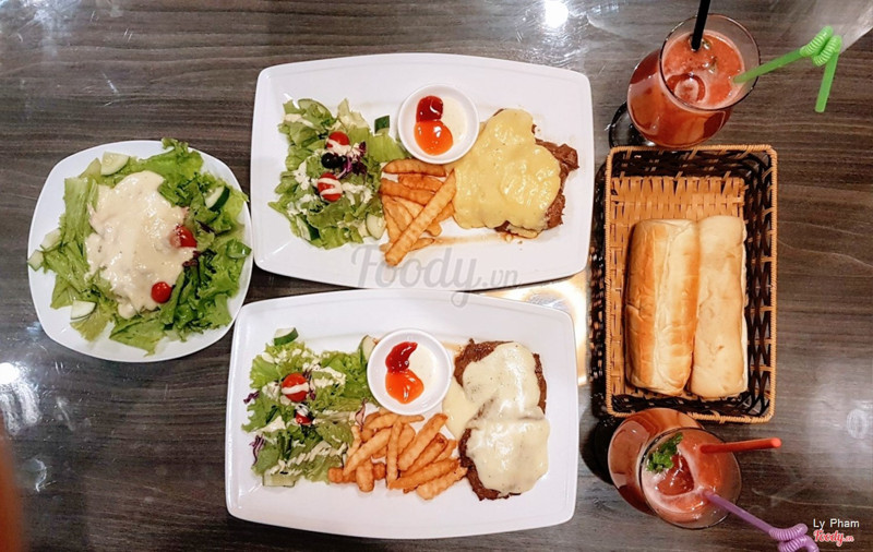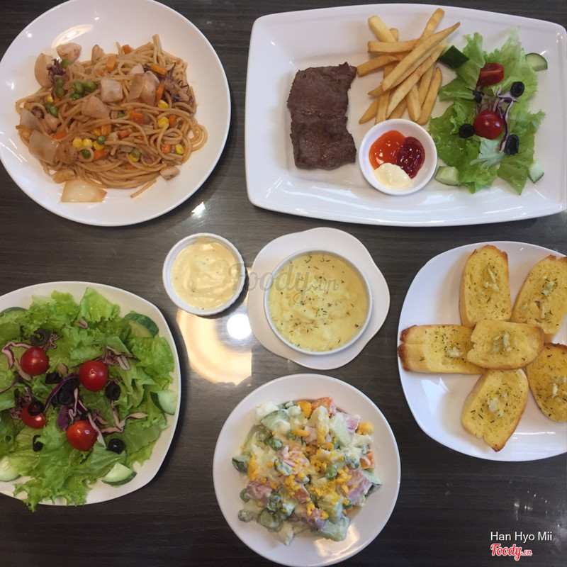 Ôi thôi chắc từ h trung thành ăn hàng ở đây quá :3 trc cứ k khoái đồ âu lắm, chỉ thi thoảng mới ăn thôi mà nay vừa tìm đc quán vừa rẻ vừa ngon ạ😂😂 t thích cực thích spaghetti hải sản ở đây lun, hải sản tươi ngon và nhiều lắm ạ, sợi mì to dai ngon và hương vị vừa miệng cực kì. Chỉ 55k/xuất thôi nhé. Tiếp đến steak đc làm tái vừa ngon ngậy và ngọt vị bò tươi cực. Rưới đẫm sốt phomai beo béo phê lòiii. Bmi bơ tỏi tẩm ướp ngon thôi r, salad hoa quả best ạ :3 trùi uii hoa quả tươi và ngọt ngậy dã mann. Cúi cùng là salad rau xanh chống ngấy nhaa ^^ ...View more