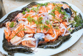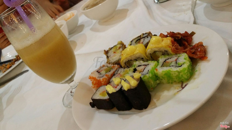 6.0Nhiều món nhưng đồ ăn chánNhà hàng nằm ở khu The Pride, Hà Đông, có lợi thế là ở khu này chưa có mấy nhà hàng lớn, buffet thế này nên cư dân ở khu vực Hà Đông ngại đi xa có thể ăn ở đây cho tiện. Lối vào ở tầng 1 là một cửa hàng bán chè sạch, chả có gì liên quan đến nhà hàng nên ai không biết chắc khó mà tìm ra quán. Trên tầng 2 thì là quán, không gian khá là rộng nhưng có vẻ hơi rộng quá gây loãng (thế mà vẫn ồn ào được). Nhóm mình đi đông, được xếp cho một phòng chả biết có phải phòng VIP không, ngồi thì ok vì có cửa đóng kín nên không bị ồn ào và ít bị mùi thức ăn (ở phòng chung phía ngoài mùi thức ăn sực nức rất kinh khủng), tuy nhiên đi lấy thức ăn thì hơi xa, bất tiện. Đồ ăn thì trông có vẻ rất rất là nhiều và phong phú, có cả thịt đà điểu, cá sấu gì đó luôn xD, nhưng quan trọng là chất lượng thì không ổn lắm: các loại ốc và nước chấm ốc đều nhạt thếch, các món xào thì mùi vị y hệt nhau và không ngon, sashimi với hàu thì mùi vị không tươi ngon tí nào, nói chung mọi thứ đều nhạt nhẽo. Và tráng miệng thì hầu như không có gì, vài vị kem, vài cái bánh với thạch, hoa quả thì nhạt thếch. Nói chung là trừ khi được mời chứ còn không thì chẳng quay lại làm gì vì tuy có nhiều lựa chọn nhưng lại chả chọn được gì (vì món nào cũng chán)! ...Xem thêm