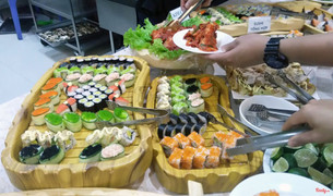 8.8Tuyệt🎂 Vị trí: khá dễ tìm, bên cạnh là siêu thị, mình chit nhớ nó gần mr.bean gì đó 🎂 Giá cả: rẻ, hợp lí, chỉ 200k/suất/người thôi mà ăn no nê chết người ý 🎂 Chất lượng: hôm nay mình đến đúng lúc nhà hàng vừa làm nóng lại tất cả các món nên ăn rất thích, món nào cũng hợp khẩu v. Mì spaghetti trộn nhiều sốt, sushi nhiều vị ngon lắm, hợp khẩu vị người miền Bắc, pizza nóng hổi cũng đầy đặn nhân và phomai, còn nhiều món khác cũng rất ngon nữa. Tuy nhiên không có nhiều món mới, vẫn là mấy món cũ nhưng càng ngày càng lên tay nghề. Còn một điều nữa là nên hạn chế lấy đĩa 🎂 Phục vụ: tận tình, chu đáo và vui tính nữa. Phục vụ nhanh nhẹn, đầu bếp thoáng qua có vẻ hiền lành phúc hậu lắm, cach giao tiếp rất ân cần 🎂 Không gian: rộng rãi, thoáng mát, có điều hoà, có nhiều góc nhiều view đẹp để chụp ảnh. Cách bày trí hiện đại, bắt mắt, sang trọng, thu hút người nhìn ...Xem thêm