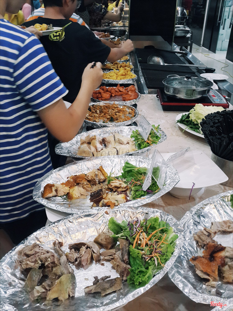 6.0Bình thườngHôm rồi đi ăn với gia đình, nhà cô chọn nhà hàng này để ăn. Má ơi cái phần tìm nhà hàng, chả có cái biển tên gì hết để mà biết là buffet, tầng 1 còn là quán cà phê hay trà gì đó. Có 1 lý do mà mình không thích đi ăn buffet đó là vì nó đông và xô bồ dã man con ngan. Cảm giác sợ luôn ấy. Đồ ăn ở đây cũng ít, không đa dạng, chất lượng bình thường không có gì đặc sắc. Nhân viên mặc đồ đồng phục bóng đá ạ chả hiểu sao )) ...Xem thêm