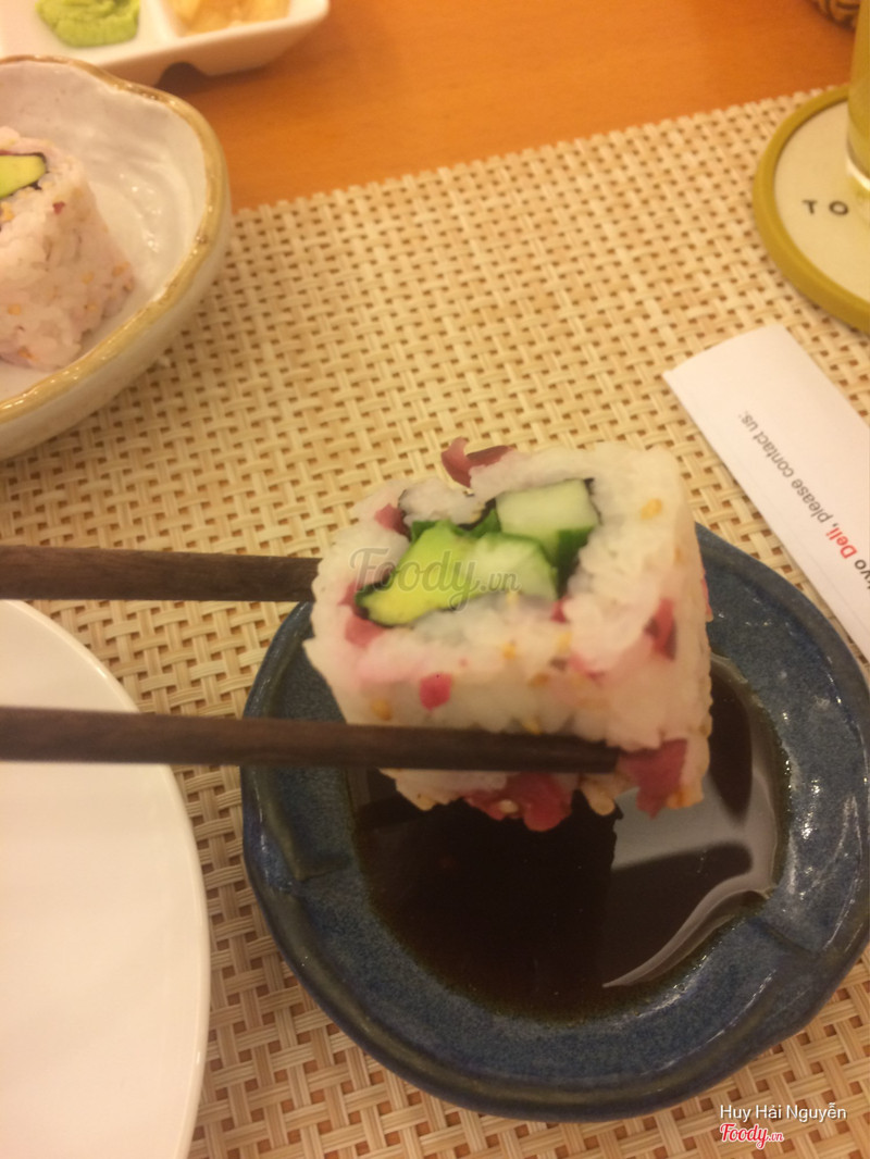10Tokyo Deli Giảng Võ -Chất lượng tốt và thân thiện với khách hàngCũng như bên Nijyu Maru Royal City, bên Tokyo Deli Giảng Võ phục vụ miễn chê. Hôm nay ăn 1 cuốn Sakura Maki (đồ chay) ; điểm trừ ở đây là nhân bên trong quả bơ hơi đắng.Trà Matcha lạnh cũng rất hợp nếu như uống thêm đường ( bạn nào kiêng ngọt thì ko cần cho). Cơm thì có màu hồng do lá tía tô và chút chua mặn của quả mơ umeboshi. Rất cảm ơn Tokyo Giảng Võ đã cho mình một set ăn giá hợp túi tiền thế này ( tiền ko có nhiều, hihi) ^_^ Chỗ ngồi đẹp, nhưng hôm nay nắng to quá phải kéo rèm. ...Xem thêm