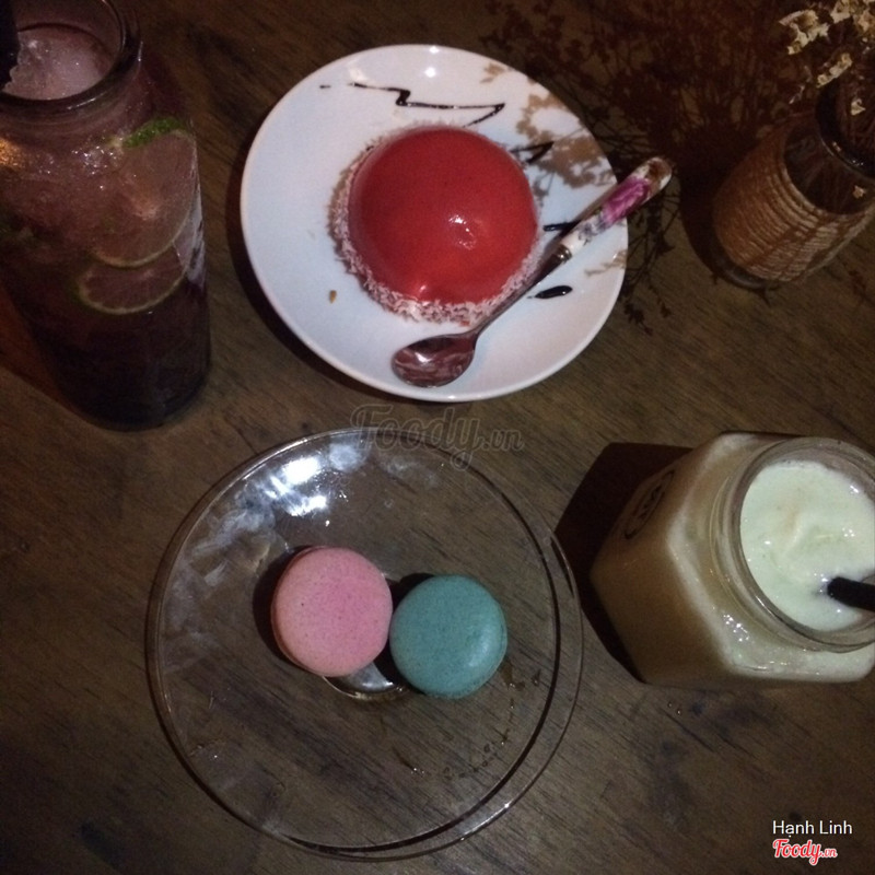 Ko hiểu đầu óc mình tồi tệ đến thế nào mà lại nhớ nhầm chỗ này có bánh ngon mới kinh. Thật sự là quán chán chứ ko phải chán vừa. Mặc dù nằm sâu trong ngõ nhưng có biển chỉ đường rõ ràng nên ko sợ nhầm đâu nha. Quán có 3 tầng, khách đến quán order đồ ở tầng 1 rồi ngồi ở tầng 2 hoặc 3. Mình đến buổi tối và thực sự là trên tầng 3 của quán cứ tối mù mù í, ngồi lâu hơi khó chịu. Nhân viên ở đây mặc dù lịch sự nhưng làm đồ uống rất rất rất lâu, lâu khủng khiếp, mình ngồi đợi phải nửa tiếng đồng hồ đồ mới lên. Mình gọi lassie mãng cầu và mojito nhưng ko cái nào trong 2 cái ngon cả. Bánh macaroon thì chán kinh khủng, vỏ cứng đơ và toàn vị đường ko hiểu phân ra các loại vị làm gì, ăn ko khác gì cái loại bánh macaroon đểu bán dưới siêu thị Lotte. Bánh mousse đào nhìn hình thức thì có vẻ đẹp thôi chứ chất lượng chưa bằng 1 nửa. Tóm lại là ko bao giờ quay lại! ...Xem thêm