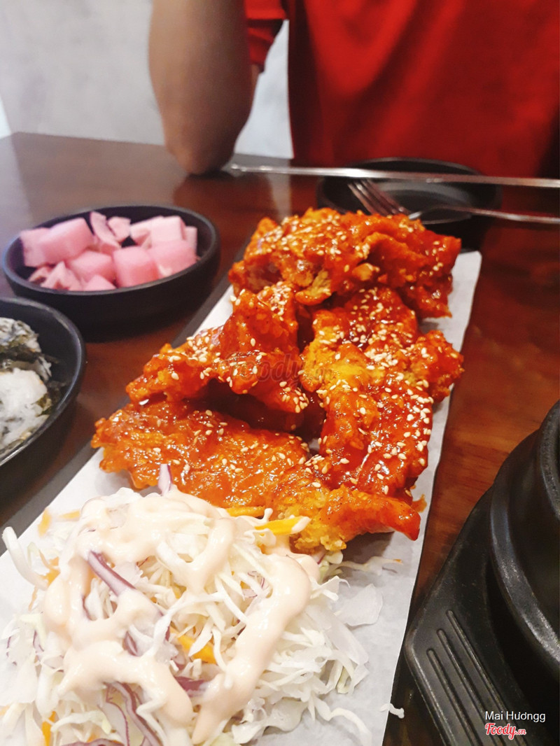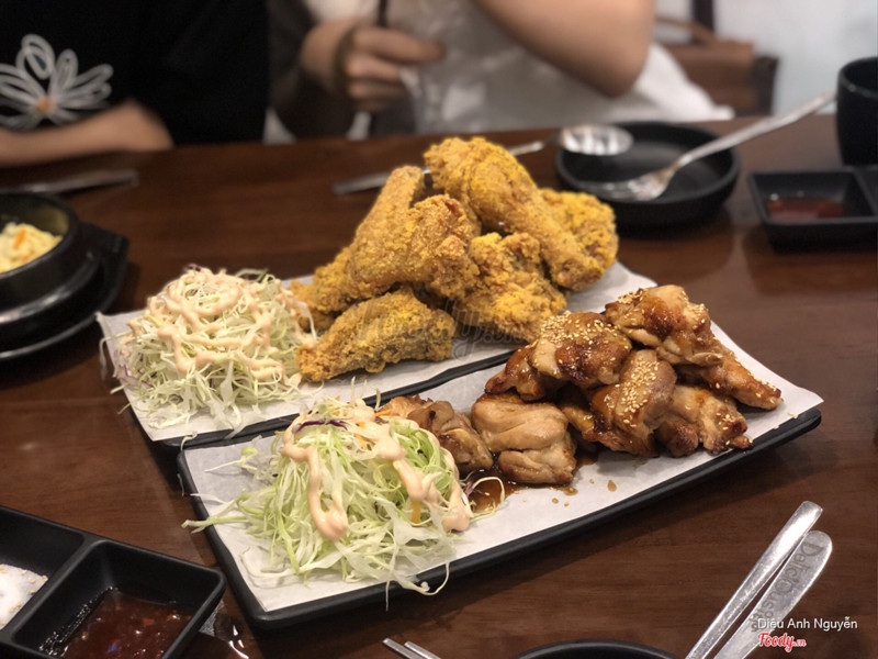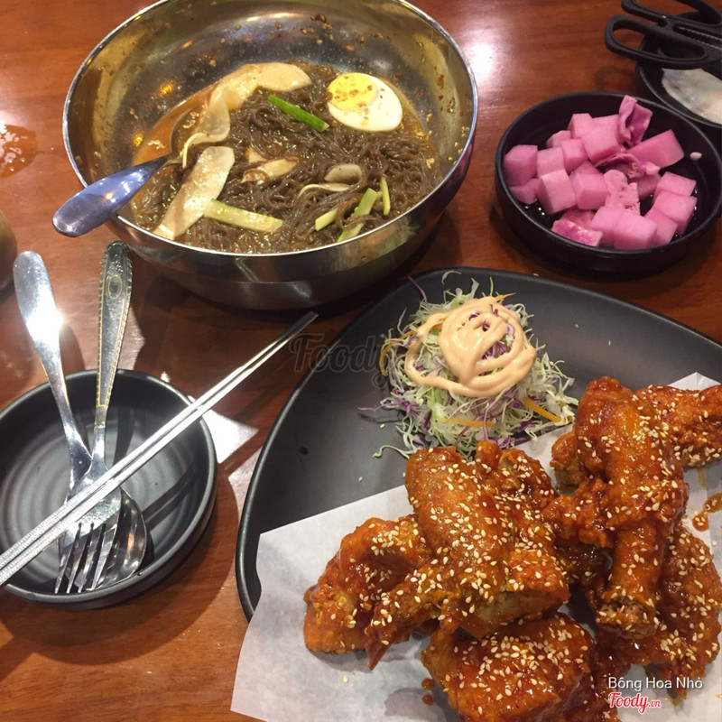 7.0Khá ưng bụngMột ngày đẹp trời eny thèm cả gà rán hq lẫn mỳ lạnh, mình bèn đi tham khảo ý kiến acebb và đc gợi ý cho quán này. Thật ra mình nhớ là hôm đó ăn ở cs Times nhưng tìm ko thấy nên review cs này 😬 Không gian quán khá thoáng đãng sạch sẽ, các bàn cách nhau vừa đủ để có sự riêng tư cơ mà mình đi có 2 ng thì bàn hơi rộng 😂 Nhân viên rất nice và nhiệt tình. Bọn mình chỉ order 1/2 gà sốt và 1 mỳ lạnh nhưng cũng khá no. Order xong đợi khoảng 15' thì đồ ra đủ. Panchan ở đây khá đơn giản, cũng ko có gì đặc biệt. Gà rán ngon, lớp thịt bên trong vẫn còn nóng hổi, lớp bột bên ngoài giòn rụm ăn với sốt thấm bên ngoài cực cuốn, vừa miệng. Mỳ lạnh để riêng nước dùng khi ăn mới chan vào, vừa miệng, ăn gà mà có bát mỳ lạnh mềm mềm dai dai giải ngấy thì đúng chuẩn bài. Tuy là nước dùng lạnh nhưng mỳ rất thơm nhé, chắc do đc rắc nhiều vừng và có xíu dầu vừng. Giá cả khá ok, mình ko nhớ chính xác nhưng khoảng 100-150k/1 ng là no nê rồi. Sẽ quay lại để thử các món khác nữa 😬 ...Xem thêm