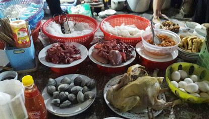 Ở đây có bán từ lúc chiều tối cho đến đêm muộn với khá nhiều đồ ăn từ trứng vịt lộn, đậu trần, bò tim trần cho ai muốn nhậu nhẹ . Đến đồ ăn bún cháo miến phở.
