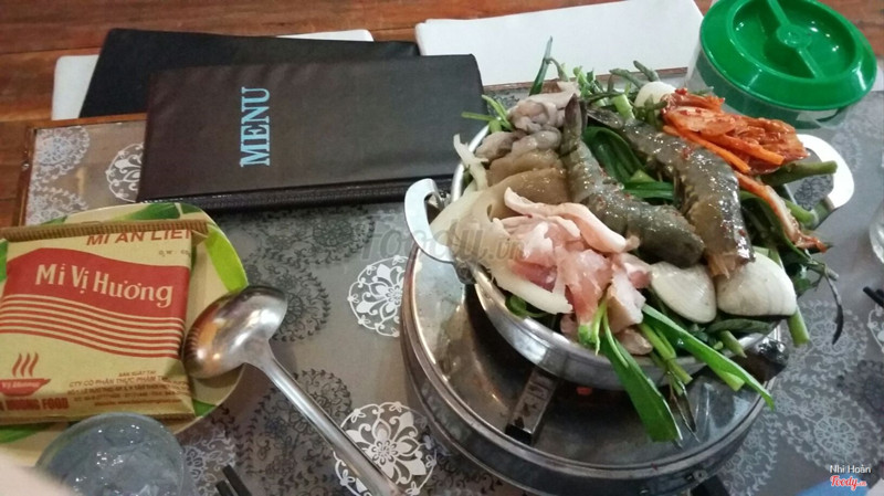 8.0Lẩu kim chi 99kNước lẩu dùng theo mình là khá ngon, đậm mùi kim chi. Lẩu gồm có tôm sú, nghêu, cá viên chiên và thịt của một loại cá nào đó mà mình ko biết mà ăn thì rất ngon ko tanh tí nào. ...View more