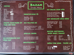 8.0Bazan CoffeeQuán cafe này bên đường Huỳnh Ngọc Huệ, cuối đường, hơi xa tý nhưng bù lại đỡ đông xe, đỡ ồn ào, thích hợp ăn sáng uống cafe nhẹ nhàng. Không gian kiểu nhà cổ như mấy quán Trúc Lâm Viên đồ, nhưng nhỏ hơn chút và tất nhiên rẻ hơn rất nhiều. Menu khá nhiều món, giá tầm 15-30k là nhiều. Ai ở gần khu này thì ghé thử nha ^^ ...Xem thêm